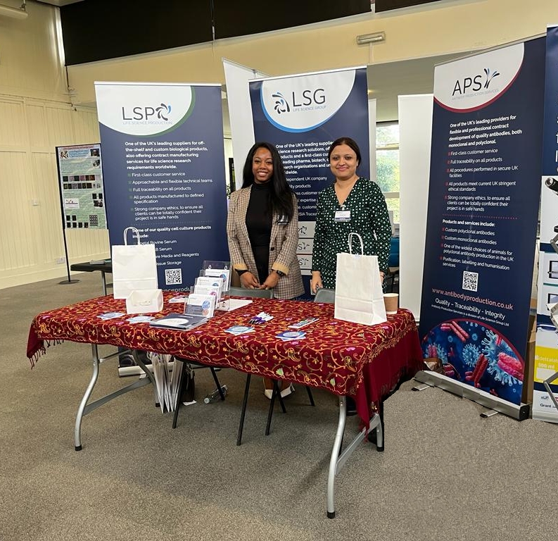 Alissia, who does Sales and Marketing and Esha, our Technical Manager of Antibody Production Services are at the University of Southampton Technician Conference. They can answer any questions, discuss future projects, and give you information to take home with you.